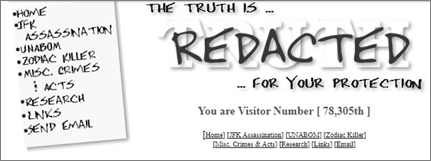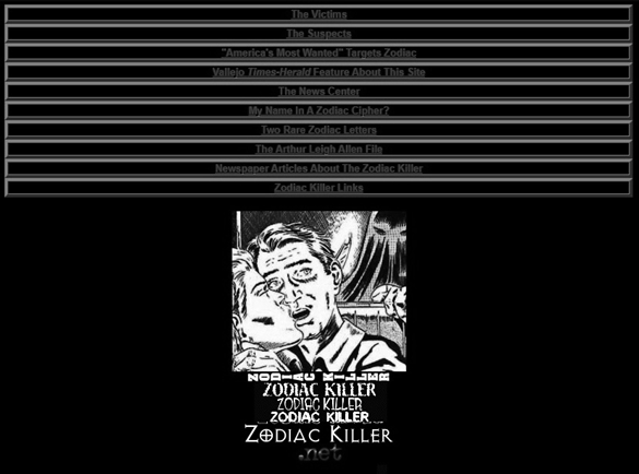 How my website appeared in 1998. Originally called Zodiackiller.net, it quickly became Zodiackiller.com