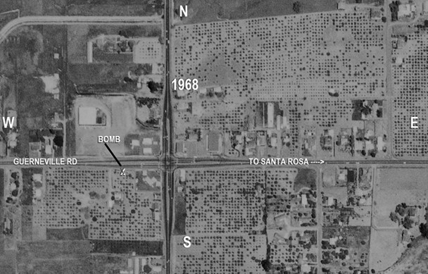 *While the area has since been developed, the spot where the bomb was found — right next to Guerneville Road in what is now someone’s yard — was relatively untouched by progress