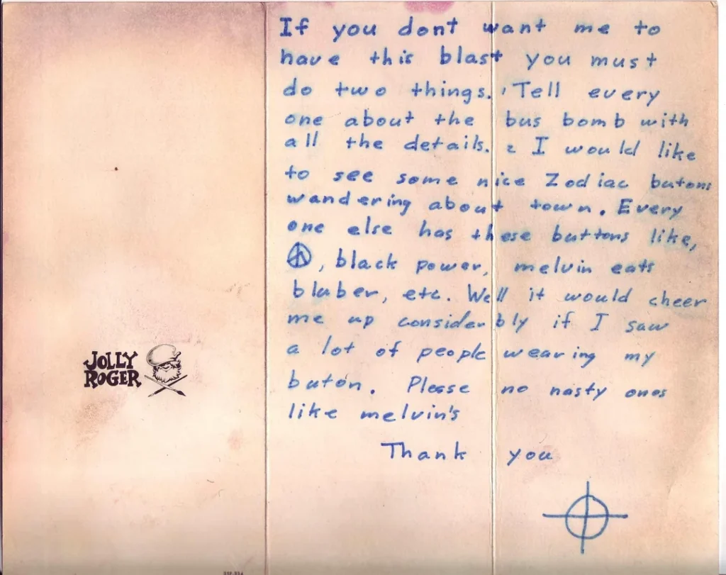 On April 28, 1970, the Zodiac killer provided a communication to the San Francisco Chronicle newspaper